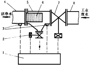 1、控制器2、排污電磁閥3、壓力傳感器4、出口管道5、過(guò)濾器殼體6、過(guò)濾介質(zhì)7、管道電磁閥8、入口管道。